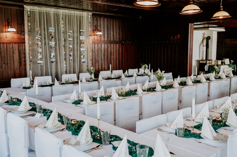 Chata nabízí prostorné zázemí pro svatební obřady i hostiny — k dispozici je velký sál s tanečním parketem, venkovní terasa, zahrada, altán i rozlehlá louka. Ubytování až pro 29 osob v pohodlných pokojích s vlastním sociálním zařízením zajišťuje komfort vám i vašim hostům. Nechybí ani dětské hřiště a parkování přímo u chaty.